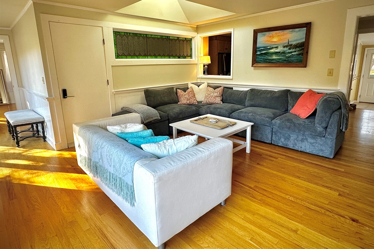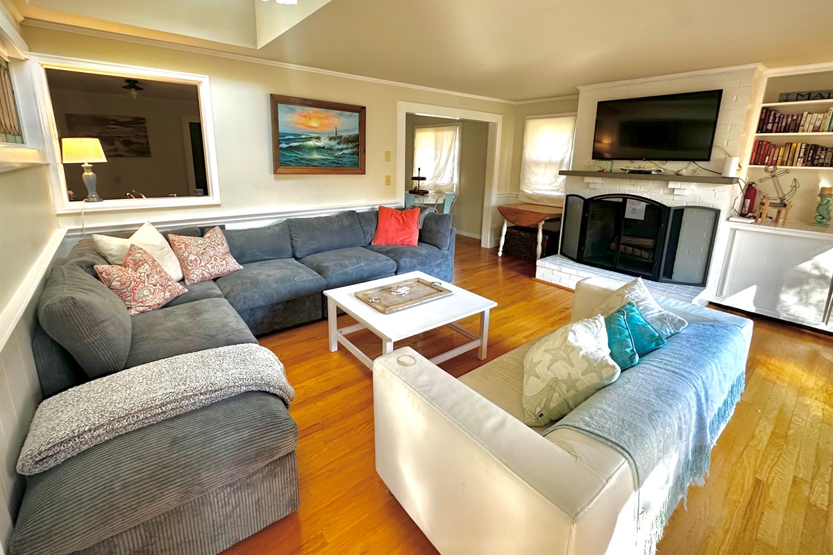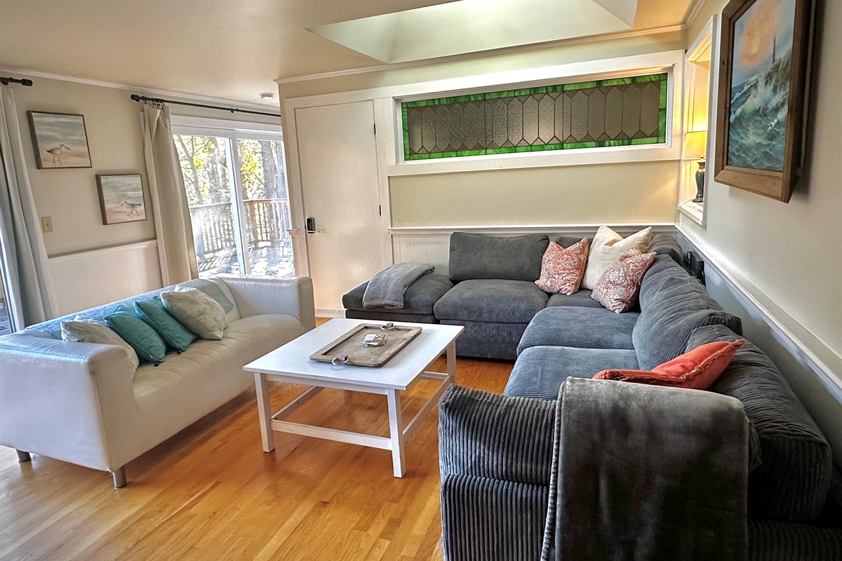 3 Bedrooms • 2 Bathrooms 2 Baths • Sleeps 1-7Unwind in this cheerful and lavender house on the hill. This cottage has a gorgeous view and sun filled deck that overlooks the trees. It makes you feel you’re in the woods when you’re minutes away from the beach. This 3 bedroom, 2 bath is perfect for your next family or friend getaway. The open and airy living room has views of the forest through the glass sliding doors. The master bedroom, which faces the deck, has a king bed and en suite bathroom. The second bedroom has a queen size bed, where you’ll also find the laundry room, and the third bedroom has two twin beds with a twin trundle underneath. All Coastline Vacation Rentals are stocked with a starter pack of paper towels, toilet paper, shampoo, body wash, conditioner, dish soap, hand soap, sponge, and more essentials! The front den has a futon, that's easy to pull out and very comfy, and a little breakfast nook in front of the bay window. The kitchen is perfect for nights in and is equipped with the basics that you may need: pots, pans, cooking utensils, a few basic spices. The mudroom is perfect to store your beach accessories. The beach is perfect for families with young kids, especially when the ocean is at low tide (it creates tide pools) or relax on the river side. Enjoy Marginal Way with breathtaking views of the ocean and the trail takes you to Perkins Cove. The indoor fireplace is not in working order and can not be used.